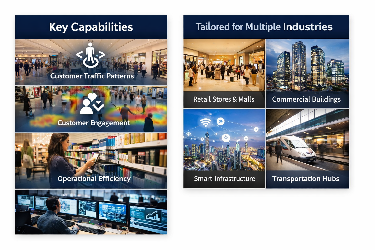 Monitor customer activity instantly, including movement patterns and anonymized demographic trends (aligned with privacy regulations).