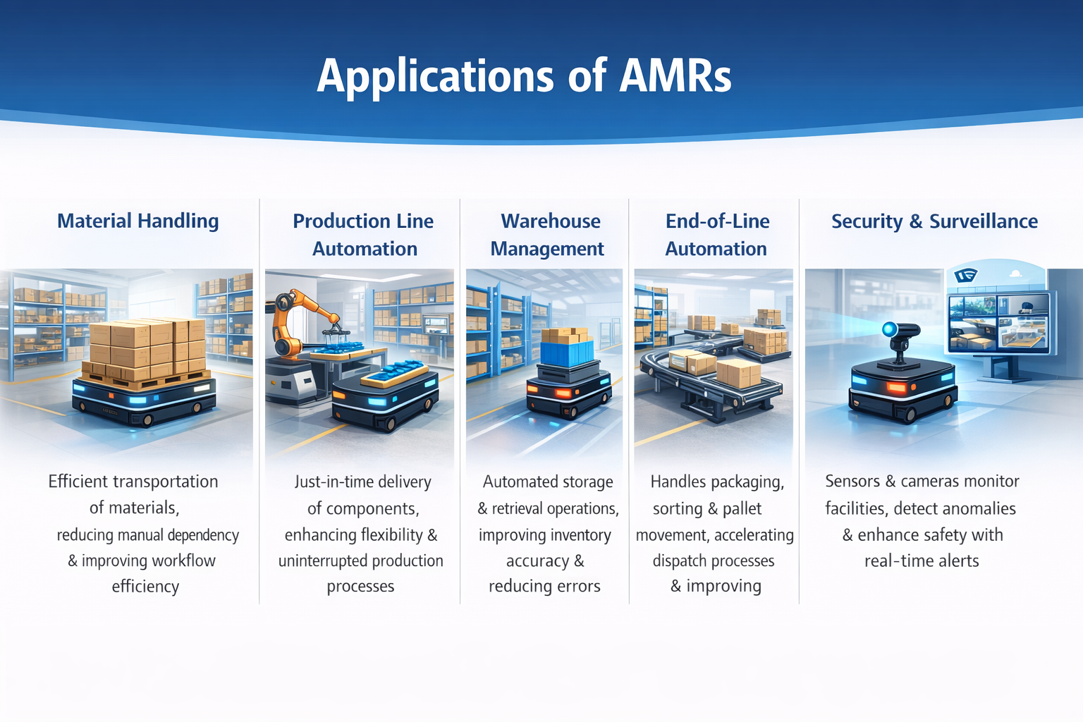 Automates material movement and repetitive tasks, reducing manual effort while improving speed, efficiency, and overall operational output.