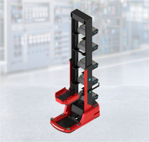 Optimized for vertical storage and smart warehousing, this system enhances inventory efficiency with real-time tracking. It supports 200 kg lifting capacity, integrates RFID/barcode systems, uses LiDAR + camera-based SLAM navigation, operates at 1.5 m/s, and ensures 10+ hours battery life.